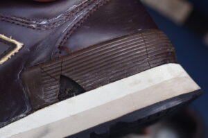 今回の575において、ヒールカップ(踵の形を保持するパーツ)が崩れてしまったのは、数年前のソール交換から今日に至るまでの数年間、O様と共に歩み、あるいは玄関で次の出番を待っていた時間の積み重ねの結果と言えます。