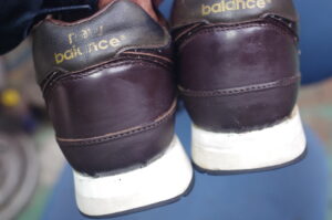 この靴と私たちの出会いは、実は今回が初めてではありません。数年前、O様からは「ウェッジヒールの交換」をご依頼いただいておりました。当時の修理でソール周りはリフレッシュされ、その後もO様の足元を支え続けてきたこの575。しかし、形あるものには必ず変化が訪れます。前回の修理時にはまだ健在だった「ヒールカップ」が、時の経過とともにその寿命を迎えてしまいました。