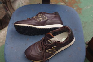 完成したニューバランス575は、一見すると修理品とは思えないほど自然な仕上がりとなりました。本革特有の柔らかな光沢が、名作575の風格をさらに引き立てています。